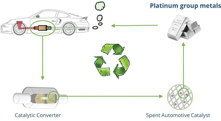 Platinum group metals recycling from spent automotive catalysts: metallurgical extraction and recovery technologies